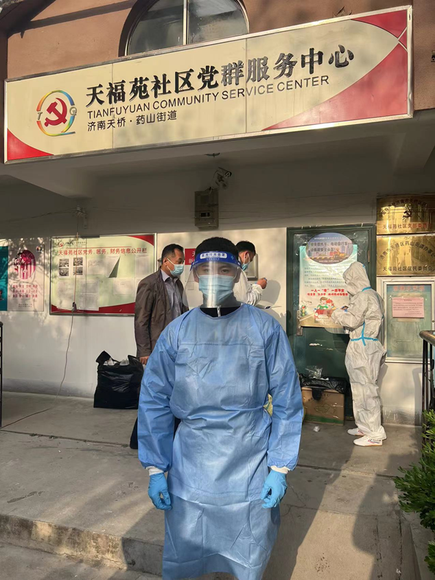 4月27日一早,來自濟(jì)南科技創(chuàng)業(yè)投資集團(tuán)有限公司黃金和張澤陽(yáng)就趕赴胥家村,站好健康查驗(yàn)點(diǎn)的第一班崗;濟(jì)南經(jīng)發(fā)基金管理有限公司的崔家浩與天橋區(qū)天福苑檢測(cè)點(diǎn)人員正做著做好核酸檢測(cè)維持秩序工作;濟(jì)南產(chǎn)發(fā)資產(chǎn)管理有限公司的任政分配到槐蔭區(qū)興福街道濟(jì)西社區(qū),與其他參與防疫的人員一起接受崗前培訓(xùn)后,迅速上崗;濟(jì)南經(jīng)發(fā)中小企業(yè)服務(wù)有限公司的謝炳怡與小鴨集團(tuán)的劉玉峰、金德利集團(tuán)的劉相濤一起前往高新區(qū)臨港街道,接受工作任務(wù)。隨后,趙梓淇、董振興、高志翔、張樂等幾名同事也投身于防疫的志愿者隊(duì)伍中。