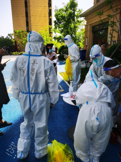 由于一直在高溫下“全副武裝”,志愿者的防護(hù)服早已被汗水浸濕,手掌被泡得發(fā)白,臉上也被口罩勒出了痕跡,更有志愿者出現(xiàn)了頭暈、流鼻血等中暑癥狀。盡管如此,他們也是稍加休整,便再次沖鋒向前。休息時(shí)間,志愿者們席地而坐,匆匆吃完奔赴崗位,因忙碌而錯(cuò)過飯點(diǎn)更是常事,然而他們卻從未有過怨言;腰肌勞損、椎間盤不好的團(tuán)隊(duì)干部即使腰疼的直不起來,也依舊抵擋不住他助力抗疫的熱情與行動(dòng)。……小鴨志愿者尋魯川在協(xié)助核酸檢測時(shí),有一個(gè)小男孩很不配合,由于當(dāng)天的核酸檢測并沒有貼紙,男孩媽媽便偷偷準(zhǔn)備了小貼畫,拜托尋魯川給小朋友貼上。尋魯川很感動(dòng),并且樂意幫忙,尋魯川說:“他兩只大眼睛直勾勾的盯著貼紙看,特別萌,心都被萌化了,真是開心了一整天,所有的疲憊都一掃而空?!?nbsp;…… 在抗“疫”前線,小鴨人和社區(qū)居民們互相理解,互相配合,如此令人感動(dòng)又暖心的事跡不勝枚舉。