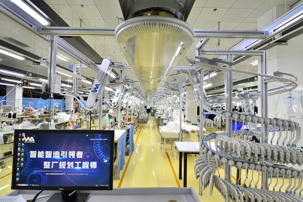 除了面料染色的智能化改造,圍繞服裝的設(shè)計(jì)、研發(fā)、生產(chǎn),元首集團(tuán)也正在加快變革,通過探索和引進(jìn)自動(dòng)化縫制單元、智能吊掛系統(tǒng)、柔性整燙系統(tǒng)、自動(dòng)立體倉儲(chǔ)和物流配送系統(tǒng),建立生產(chǎn)流程的MES系統(tǒng)管理,提高生產(chǎn)效率。