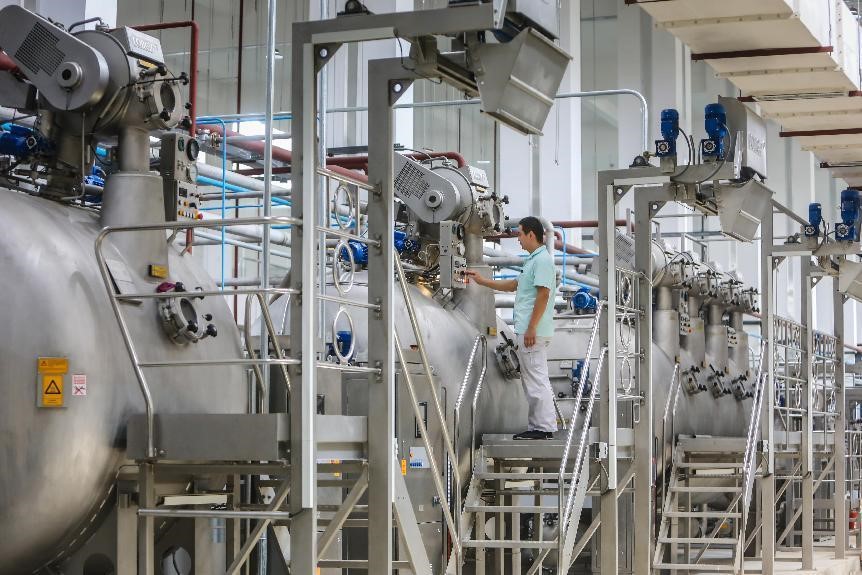 在元首集團(tuán)針織服裝產(chǎn)業(yè)園,引人注目的不僅是產(chǎn)業(yè)變革和調(diào)整,更有智能化升級后的質(zhì)量提升。其中,面料印染作為服裝生產(chǎn)研發(fā)的關(guān)鍵環(huán)節(jié),更能體現(xiàn)出企業(yè)科技創(chuàng)新實(shí)力和綠色發(fā)展水平,也是激活新舊動(dòng)能轉(zhuǎn)換的“主引擎”。