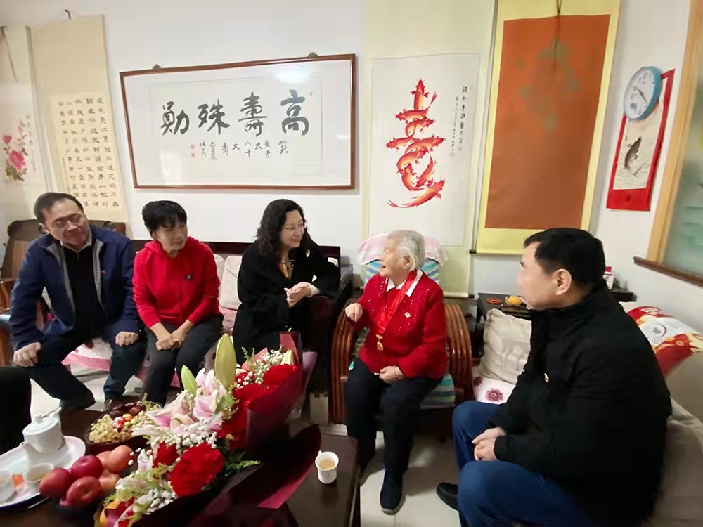 隨后黃蓓一行來到元首集團(tuán)離休老干部、老黨員黃顯和家中,送上鮮花和慰問金,致以佳節(jié)祝福,與黃顯和老人座談交流。93歲的黃顯和老人年輕時(shí)在湖南讀書期間就接受革命洗禮,秘密加入學(xué)校進(jìn)步社團(tuán),在“白色恐怖”下開展愛國(guó)運(yùn)動(dòng),轉(zhuǎn)業(yè)后在濟(jì)南針織廠辛勤耕耘近十八載,1982年4月離休,是名副其實(shí)的巾幗模范代表。黃蓓代表集團(tuán)黨委感謝她為黨和企業(yè)做出的突出貢獻(xiàn),對(duì)其在革命年代的英勇事跡表示崇高敬意,表示產(chǎn)發(fā)集團(tuán)要傳承好老一輩不懼艱辛、敢于奮斗、無私奉獻(xiàn)的精神,凝心聚力、接續(xù)奮斗。
